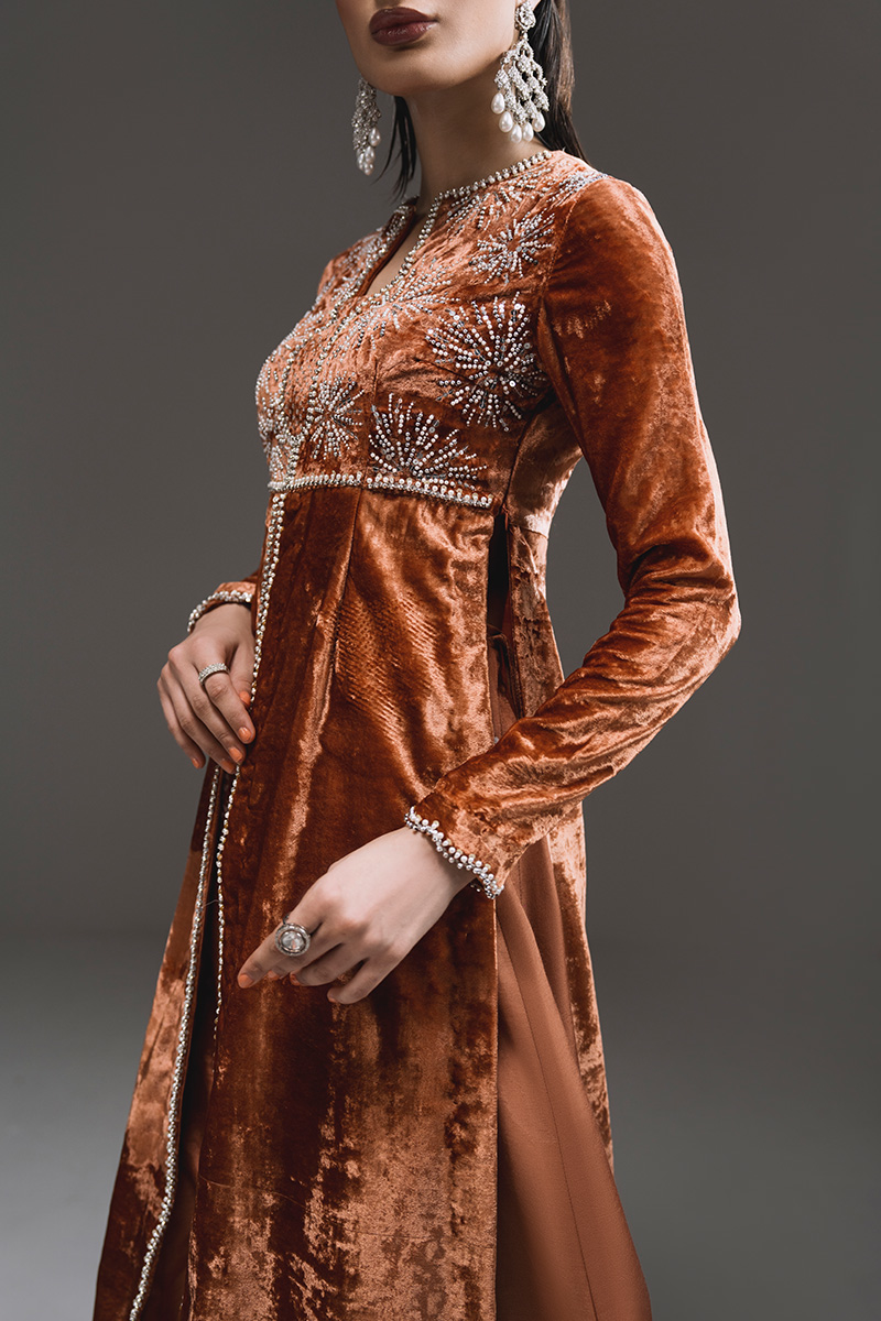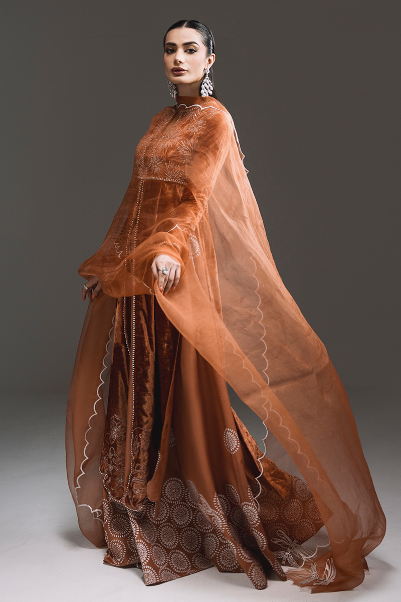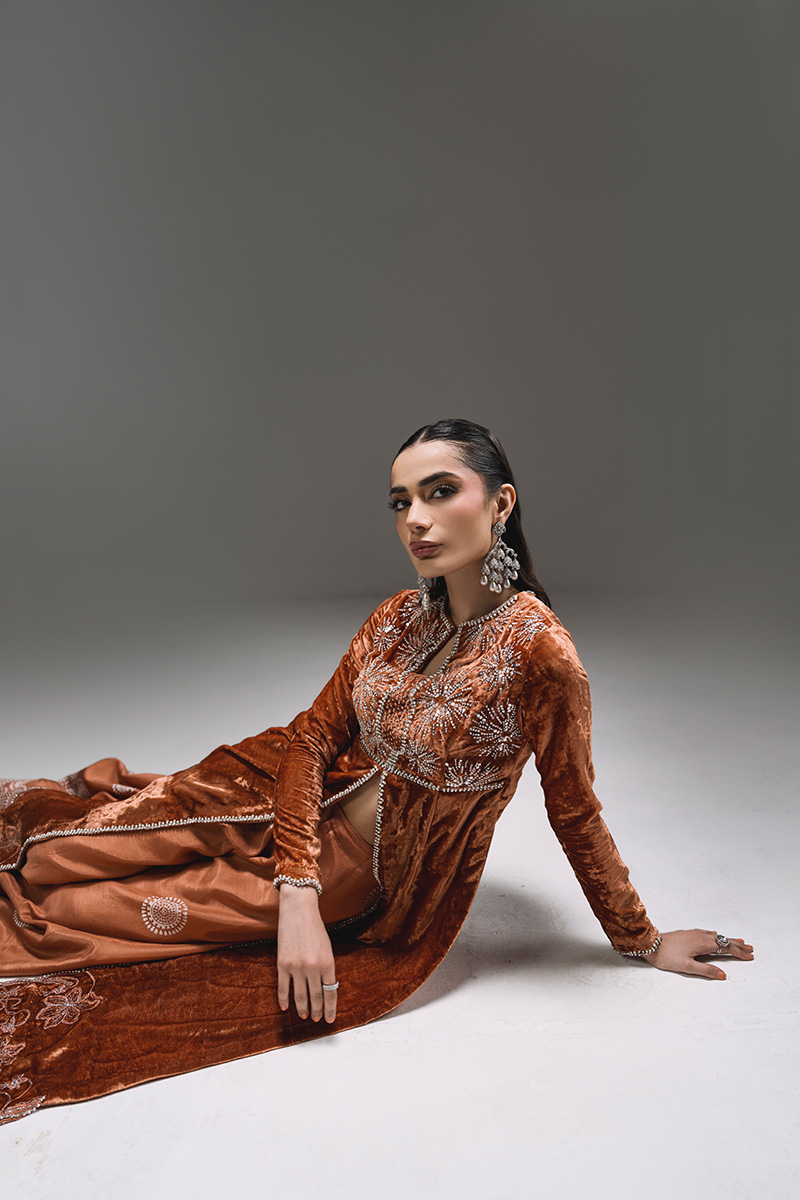 Fabric: Shirt (Velvet), Sharara (Thai Silk), Dupatta (Organza)